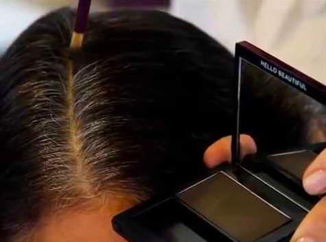 If you notice your roots are starting to show and you are pressed for time, use this simple hack to touch them up. Take a little eye shadow, in the shade that matches your hair, and use a makeup brush to blend it into your roots.